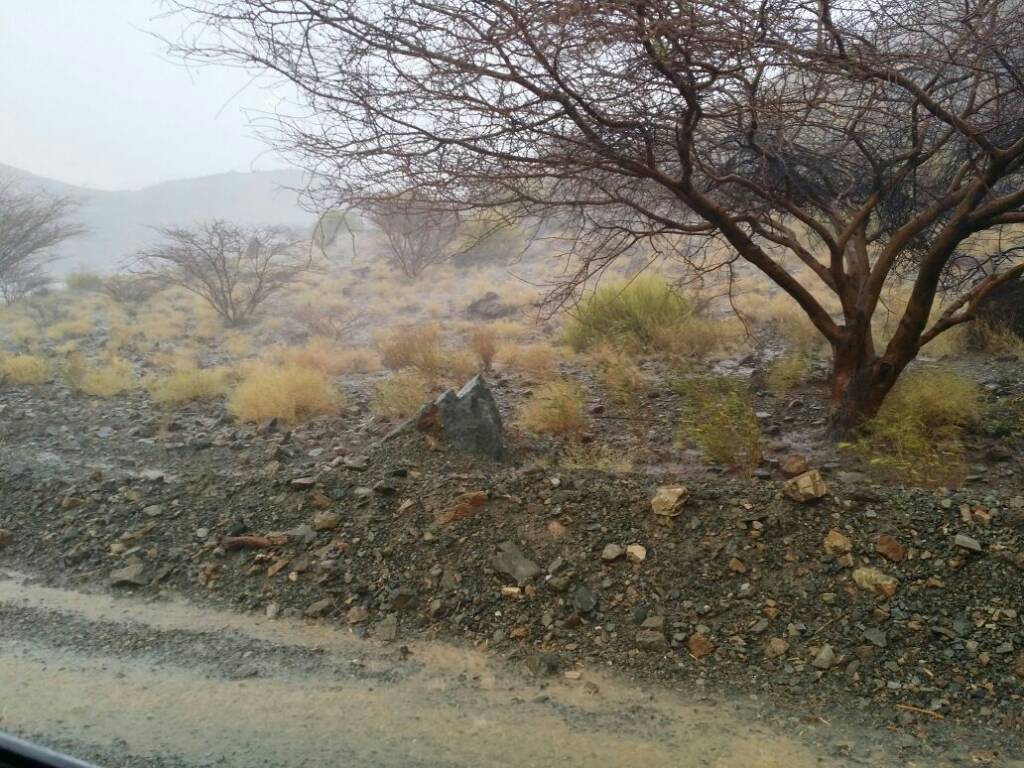 مع تساقط الأمطار المتوسطة بحبات كبار ل سيح قطنة وقرية حيل يمن