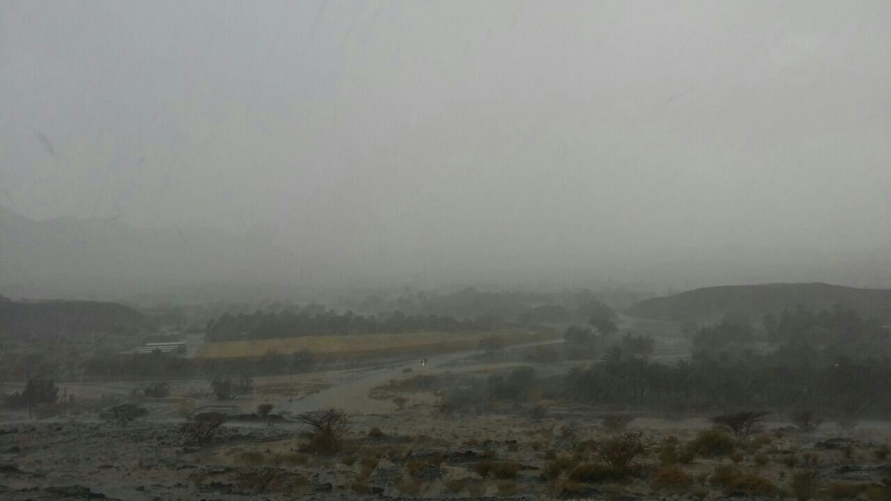 أمطار غزيرة مع تسبيح للرعد على الحمراء