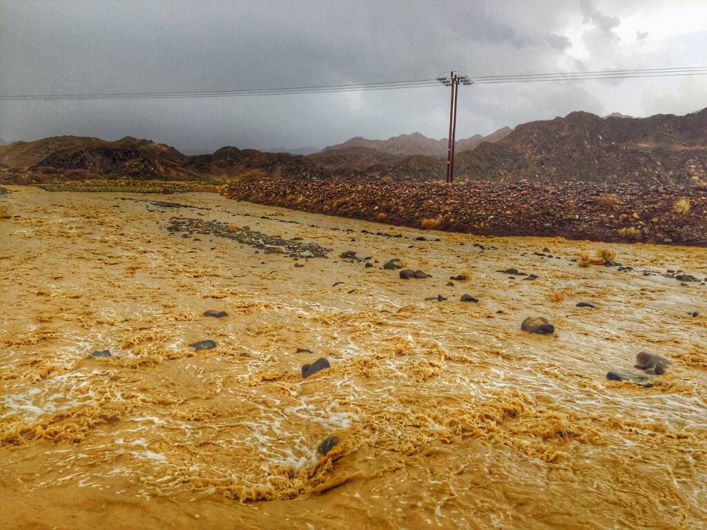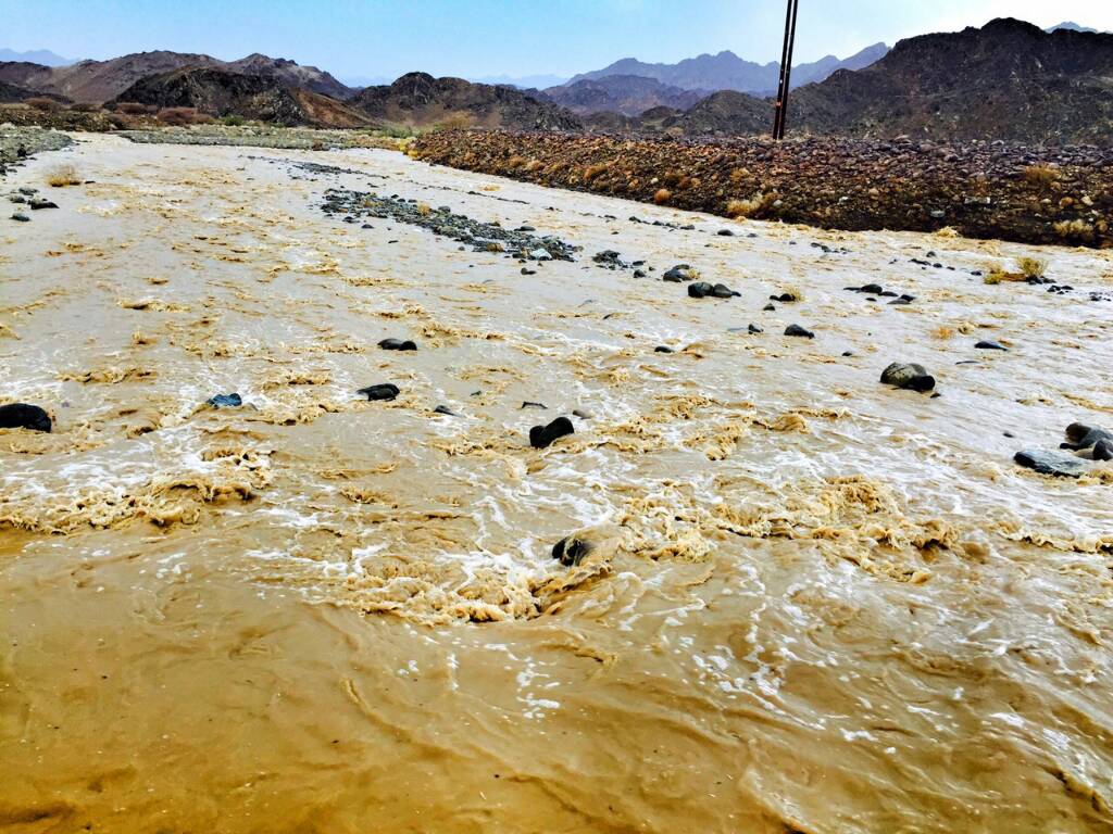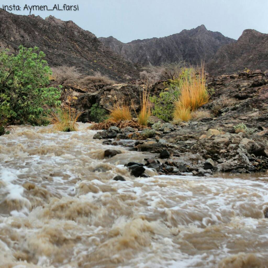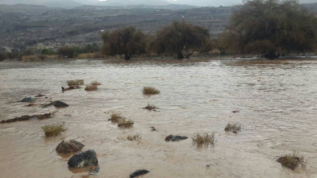 مع جريان وادي المناخر بغزارة