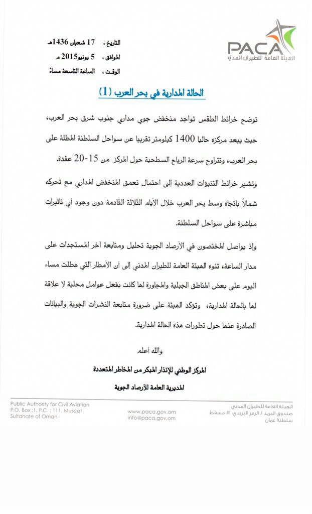 رد: توقعات الطقس في السلطنة والخليج العربي تاريخ 1/6/2015 والايام القادمة