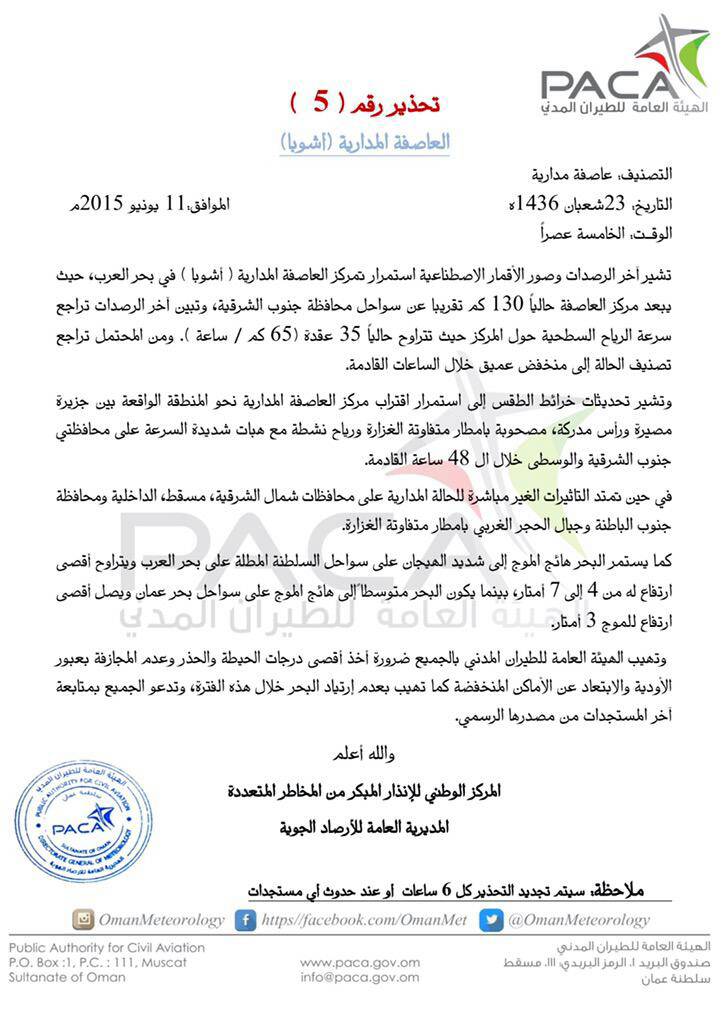 رد: توقعات الطقس على السلطنة والخليج العربي 8/6/2015 ومتابعة العاصفة المدارية أشوبا ashobaa