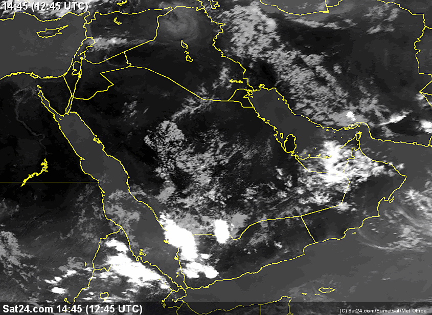 وتبيـــــــــن انتشار التكونـــــات على جبــــال الحجر من جهة ومن جهة أخـــــــرى تتواجـــد سحب كثيفة على المنطقة الوسطى من دولــــــة الامارات
