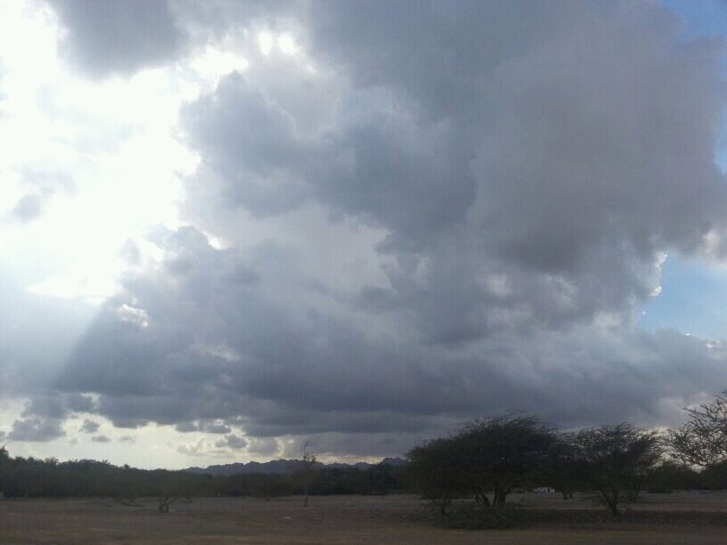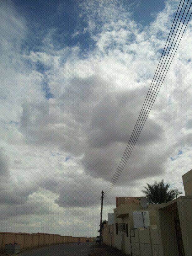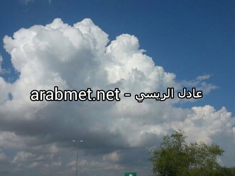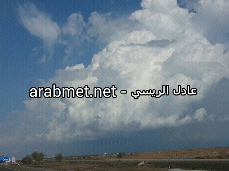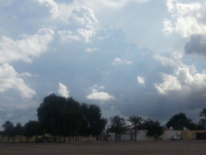 هناك سحب ركامية في الربع الخالي تشاهد من فهود قادمة من الجنوب الغربي و الرياح جنوبية غربية