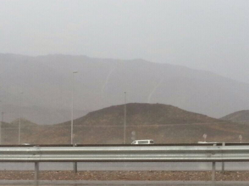 سحب منخفضة وهمايل المطر تحتها ع الجبال جنوب الخوض اعتقد ع الجبال ف السيح الاحمر