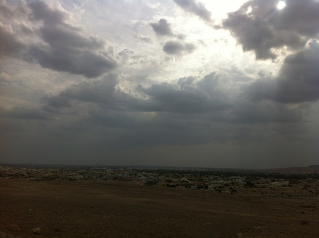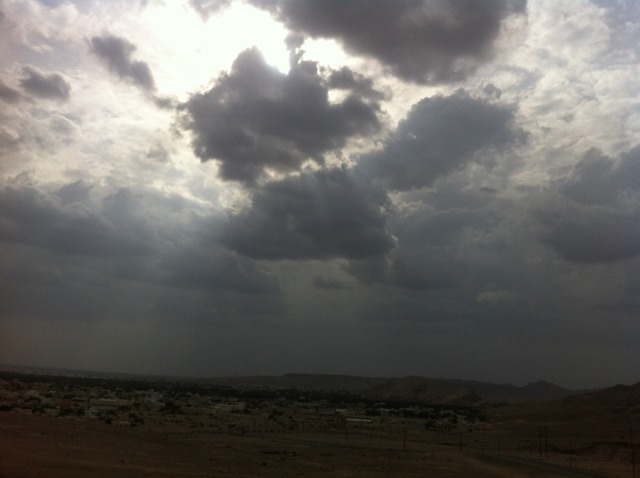 بعض السحب البسيطة تظهر على جبال الرسيل وبوشر تقريبا
