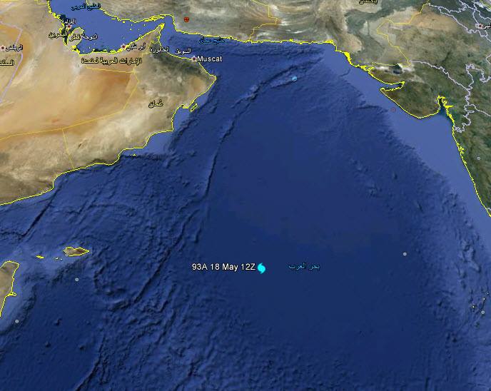 احداثيات الاضطراب المداري في بحر العرب الذي تم رصده قبل قليل: