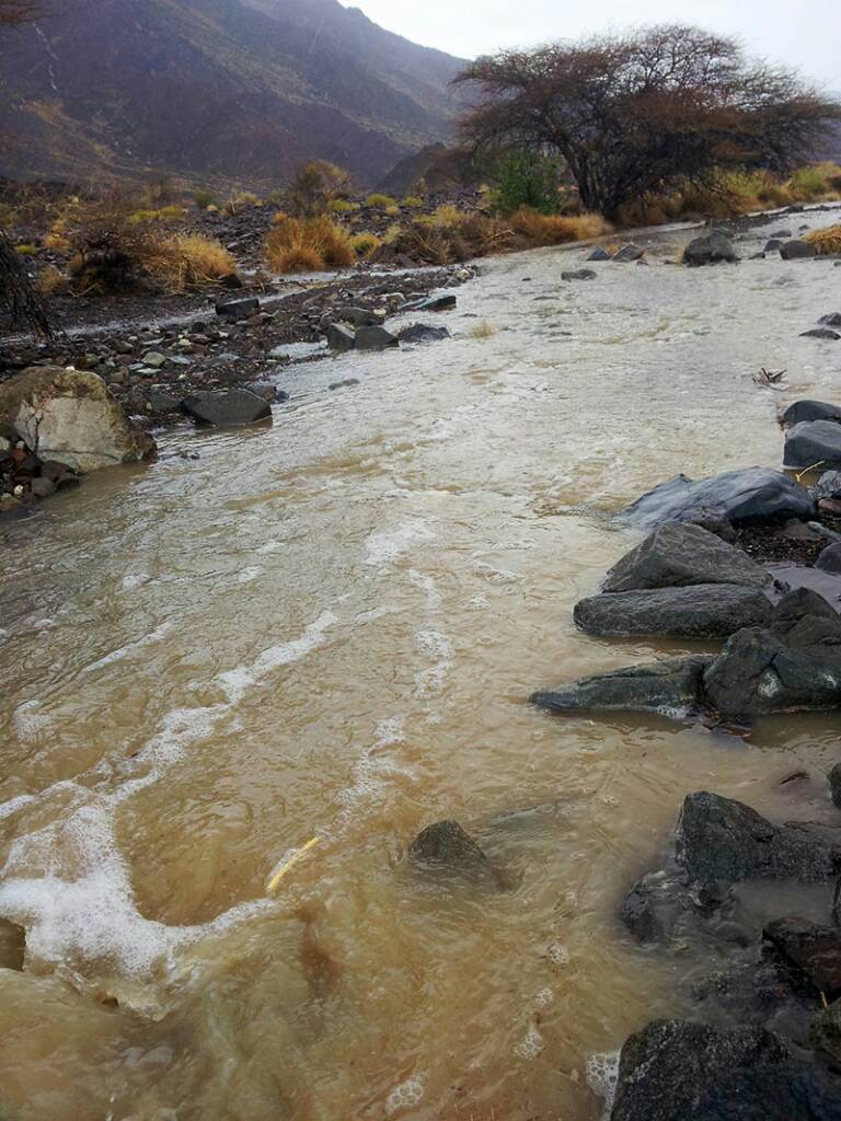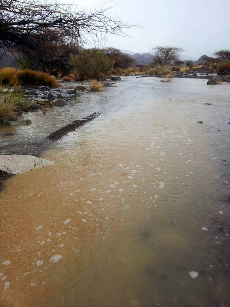 صور للأمطار المتوسطة التي هطلت على الحوراء بالمضيبي مع جريان خفيف لشعاب ولله الحمد