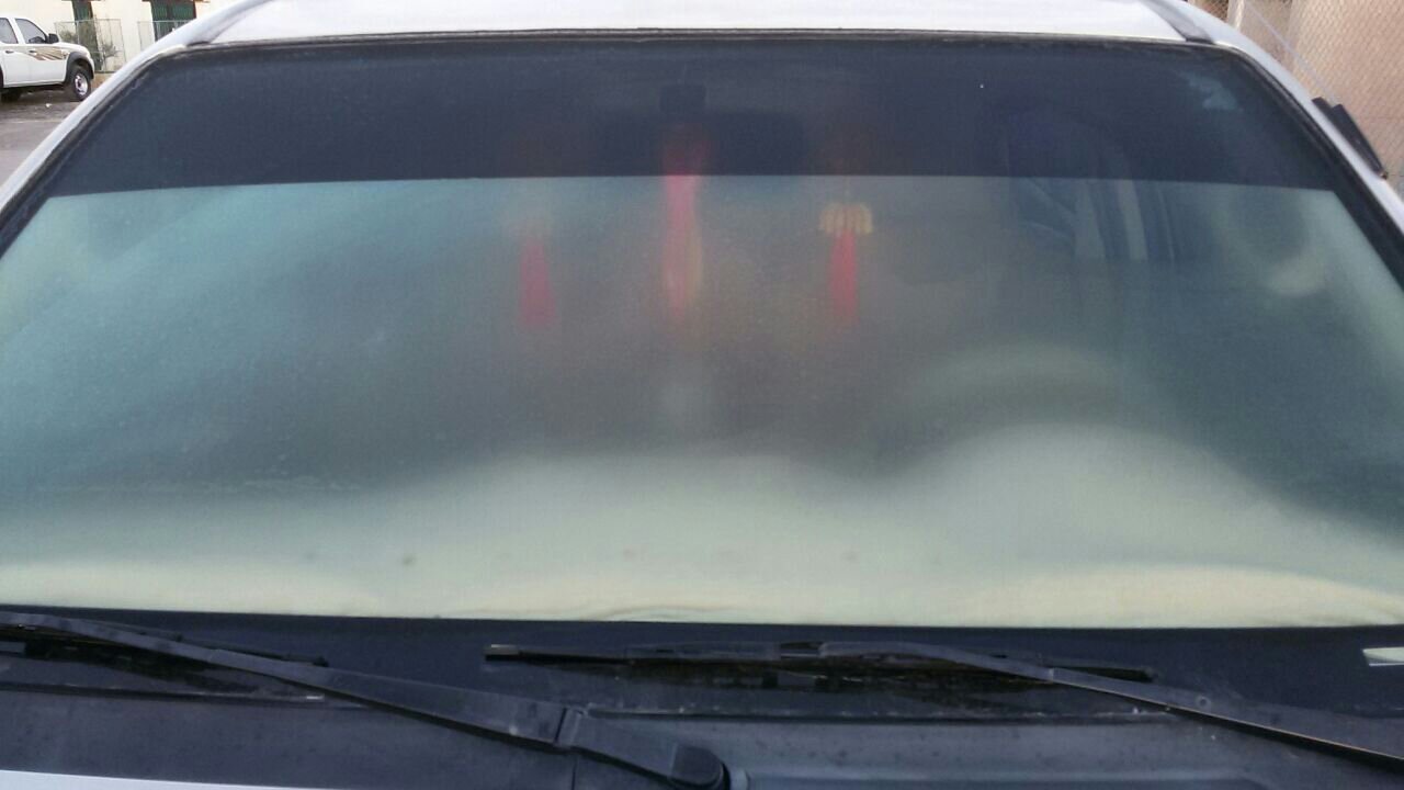 وصورة للصقيع هذا الصباح على الجامة الأمامية للسيارة