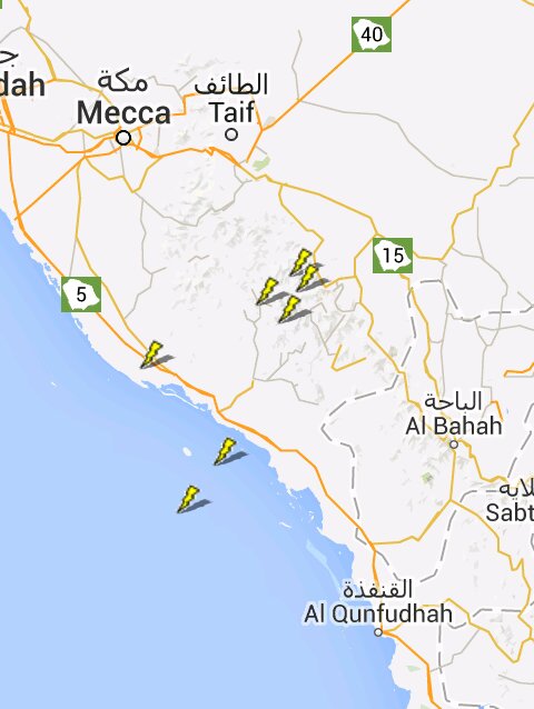 حاليا رصد نشاط رعدي بين الباحة والطائف