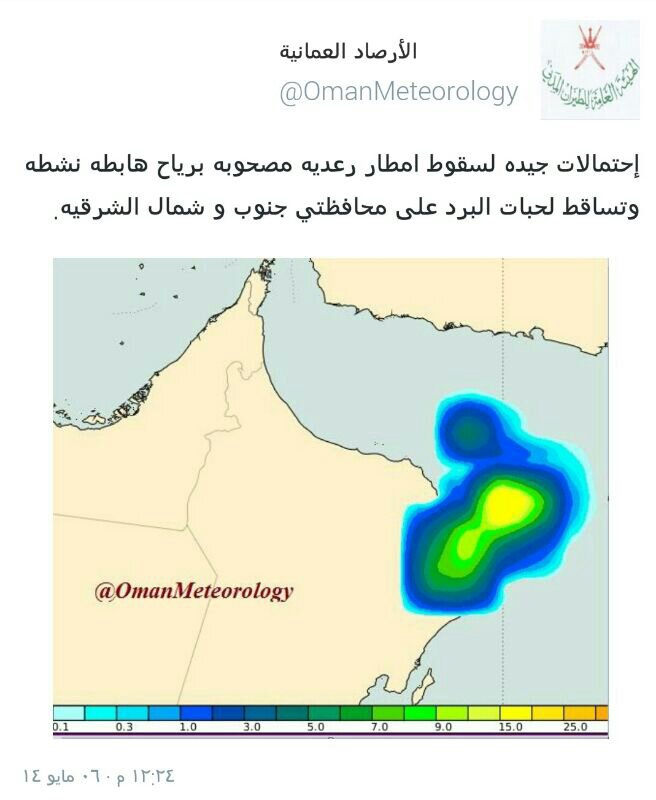 رد: متابعة : أحوال الطقس وحالة عدم الاستقرار في السلطنة ودول الخليج والوطن العربي خلال الفترة من 1 - 10 مايـو 2014م
