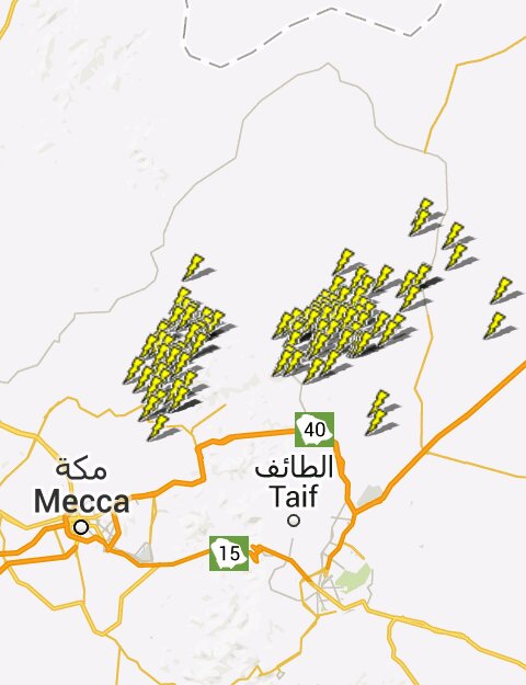 حاليا رصد نشاط رعدي كثيف شمالي الطائف