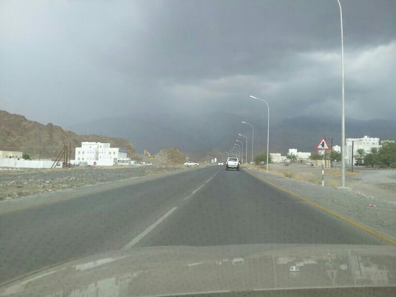 امطار قوية على وادي امطي والجبال الغربيه لإزكي بدأت تتغطى