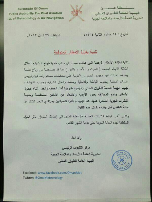 رد: متابعة الحالة الجوية الإستثنائية على السلطنة والخليج العربي ليوم الجمعة 26 ابريل 2013 م والأيام القادمة بإذن الله ( 5 )