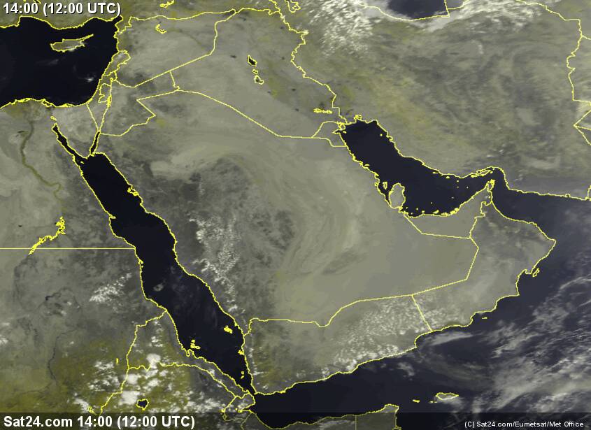 الصورة الجوية لساعة الخامسة صباحا توضح أجواء مستقرة أجمالا على دول الخليج