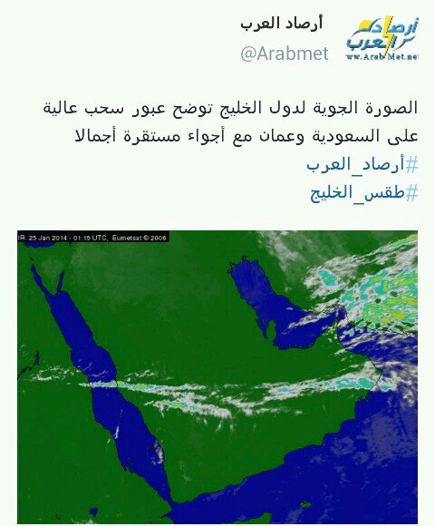 رد: متابعة أحوال الطقس على السلطنة ودول الخليج والوطن العربي خلال النصف الثاني من شهر يناير من العام 2014م