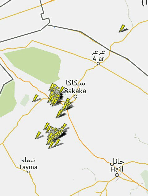 حاليا نشاط رعدي كثيف غرب سكاكا بالسعودية
