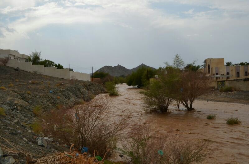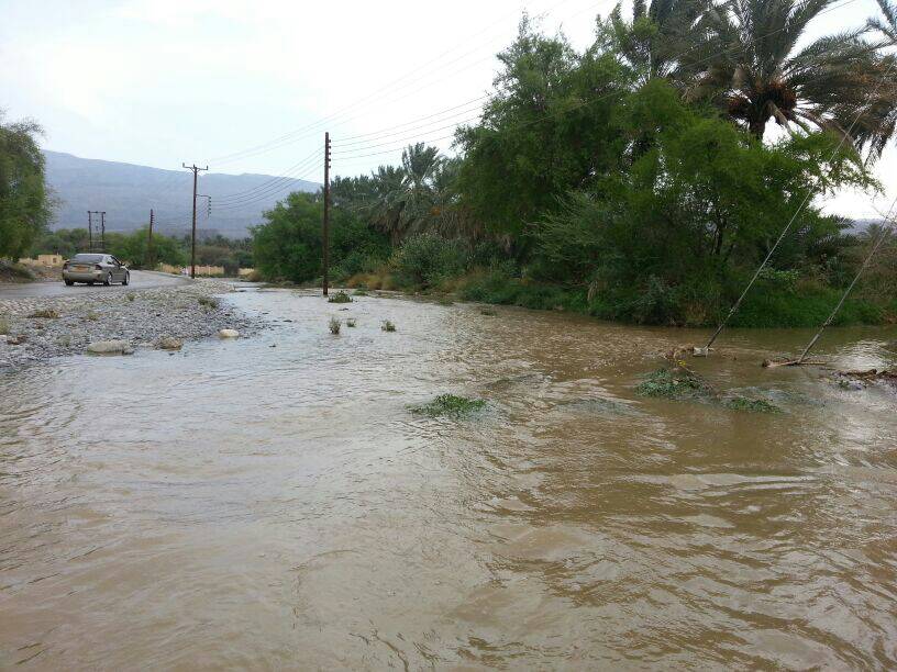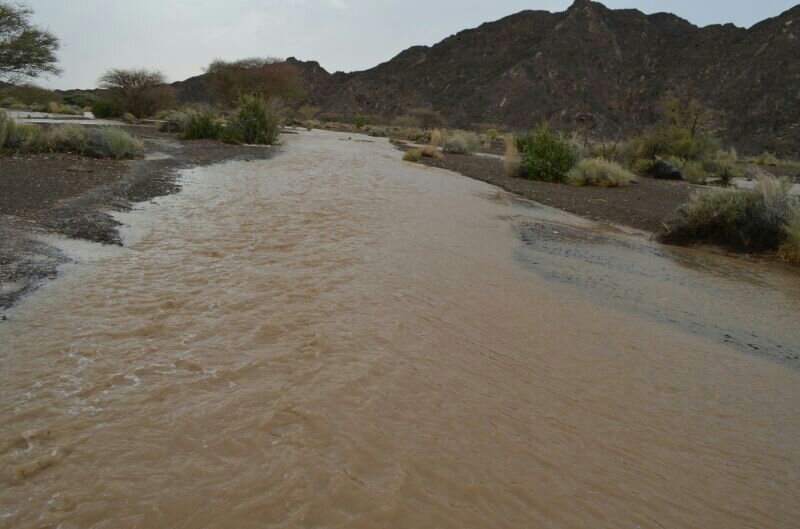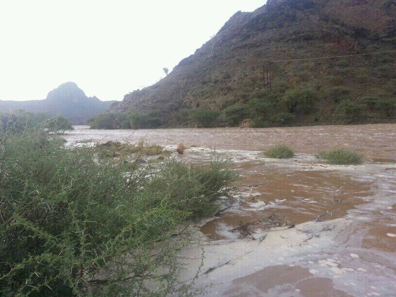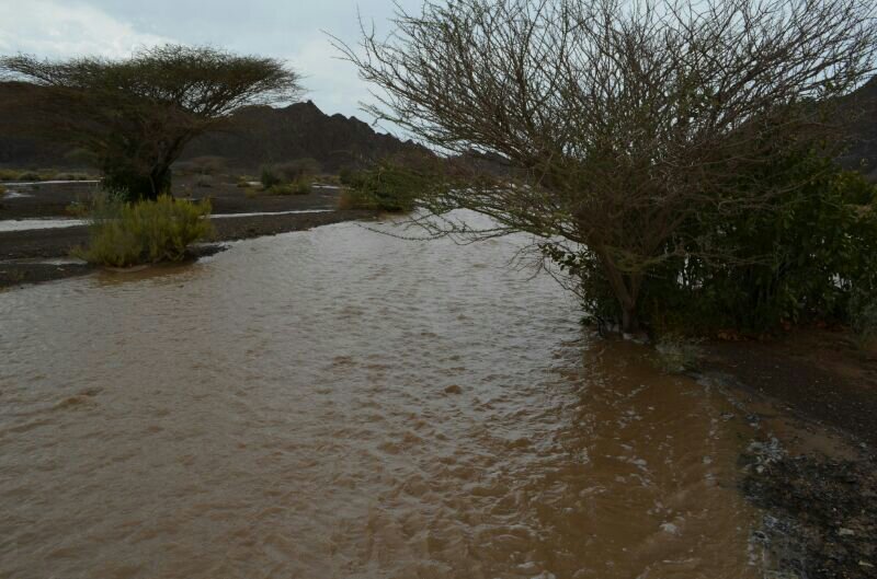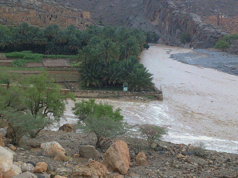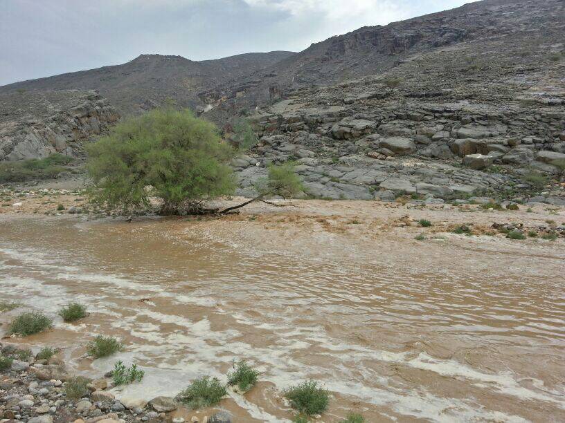 توقع جريان وادي شعمى والمدعام بولاية الحمراء الساعات القادمة نتيجة غزارة الامطار على الجبال بإذن الله