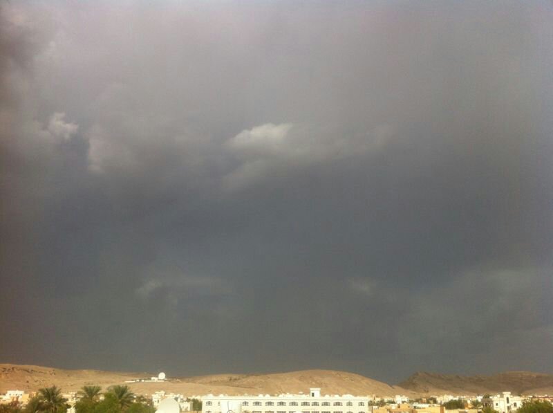 نشاط اليوم كان مميزا للتكونات نتيجة اقتراب المنخفض الحراري من جبال الحجر و اللذي تسبب بستثارة جيدة للسحب الماطرة .. و لكن تواجد لمرتفع على الطبقات المنخفضة على شمال الباطنة و اجزاء من الحجر الغربي و الاوسط ادى الى محدودية التكونات على تلك المناطق و لو لم يتواجد هذا المرتفع لشهدنا تكونات على نطاق واسع بطول حجرعمان..