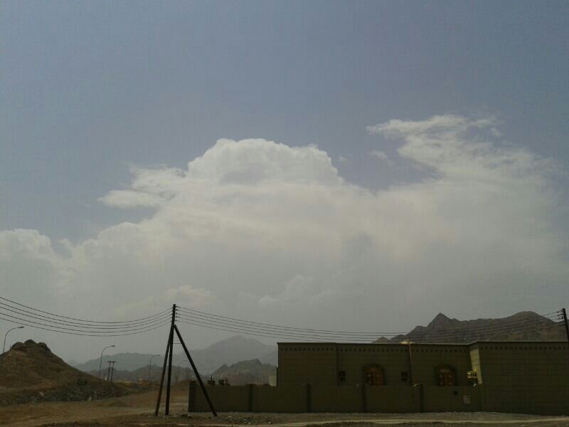 توقعات استمرار تشكل السحب المحلية على الحجرين ، حسب الراصدات تواجد سطح دافئ رطب بحوض جبال الحجر ، نسبة التكثف عالية اليوم ، ديناميكية الرياح جيد جدا ع الحجرين خصوصا جنوب الغربي وشماله ... فرص اليوم امطار رعدية مصحوبة برياح نشطة وفرص لتساقط البرد ... الحذر من قوة الصواعق ، قد نشهد اقتراب بعض الخلايا خارج السهول الحجر الغربي كذلك بالصحاري غرب الظاهرة والإمارات ... ربي اعلم