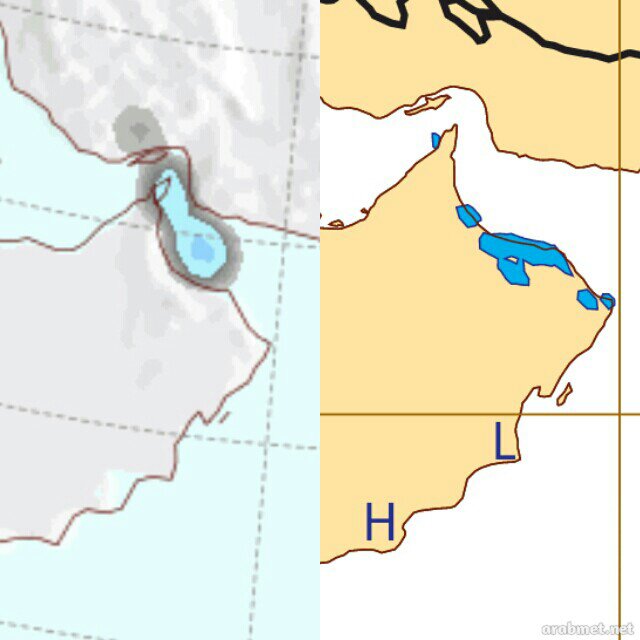 توقعات الغد الأربعاء من النموذج الأوربي والأمريكي بأمطار متفرقة على شمال عمان