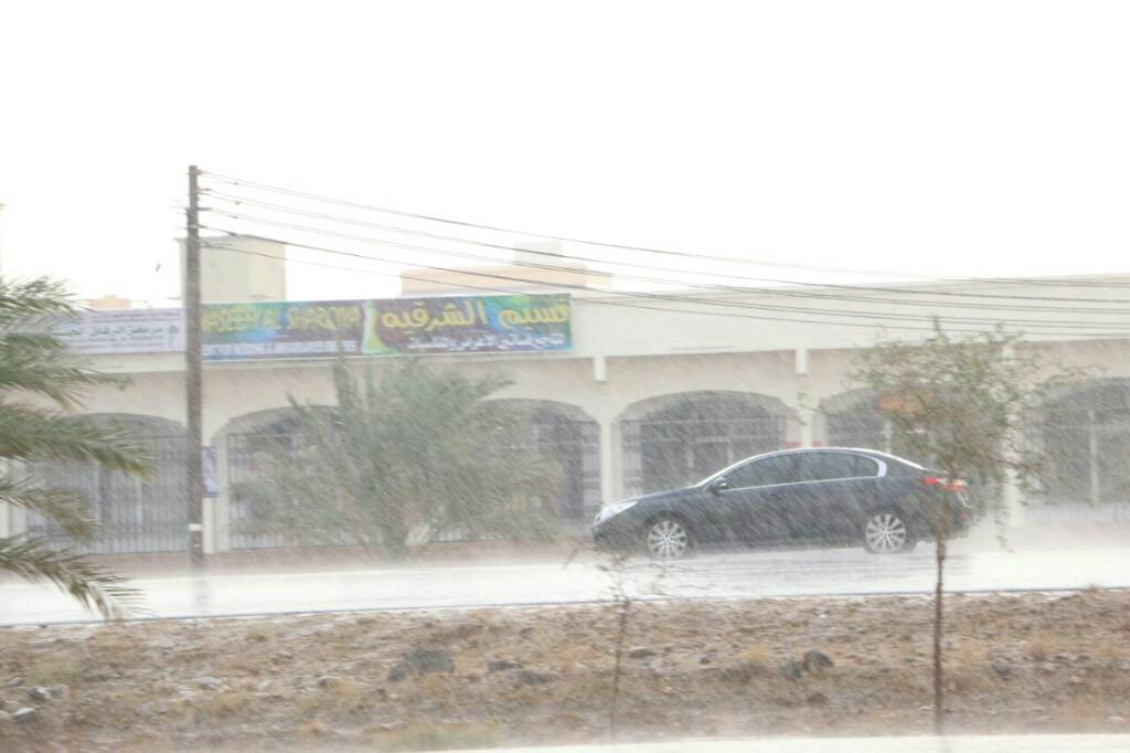 أمطار متفاوته في قوته وصلت للغزيره لفتره محدوده وتراجعت الأن لخفيفه ومتوسطه مع تبلل الأرض وجريانه بشكل خفيف