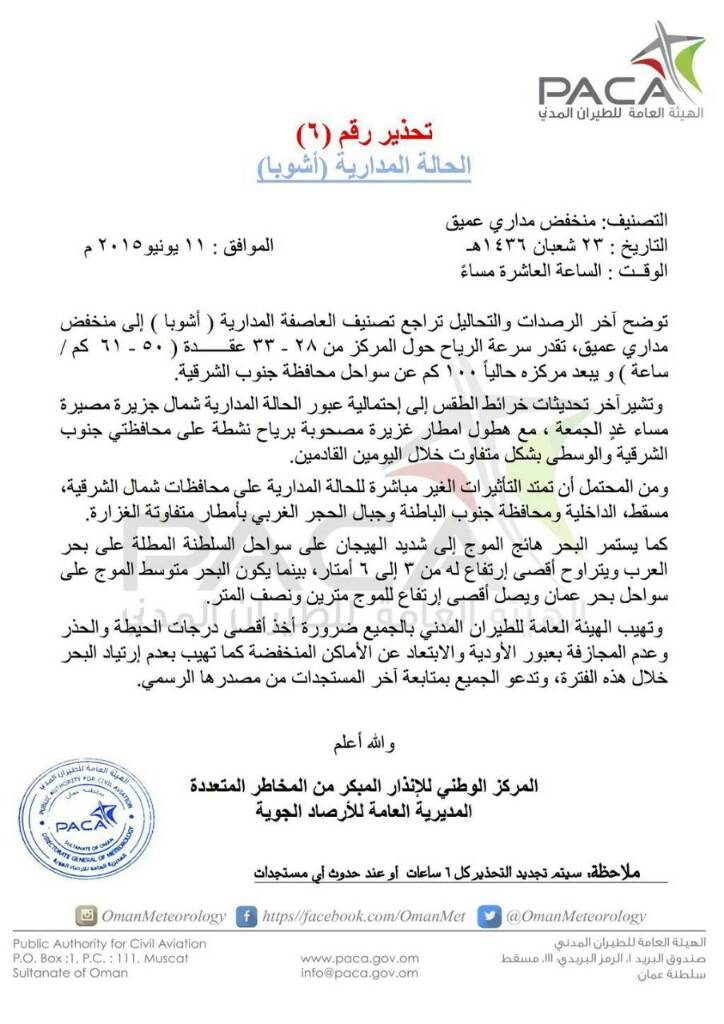 رد: توقعات الطقس على السلطنة والخليج العربي 8/6/2015 ومتابعة العاصفة المدارية أشوبا ashobaa