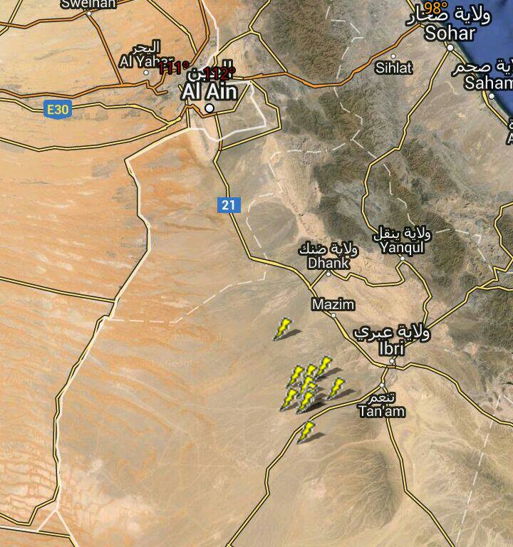 ويسبح الرعد بحمد الله شمال نزوى جهة غرب تنوف مع همائل خفيفة في بدايتها