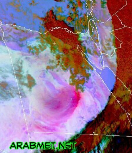 نلاحظ نشاط التيار العلويه وانكساره على البحر الاحمر لهذا تبدا السحب الرعديه بالتشكل هنالك والامتداد لشمال المملكه والعراق .. اما مصر حاليا تتاثر بتيار قطبي هابط ..