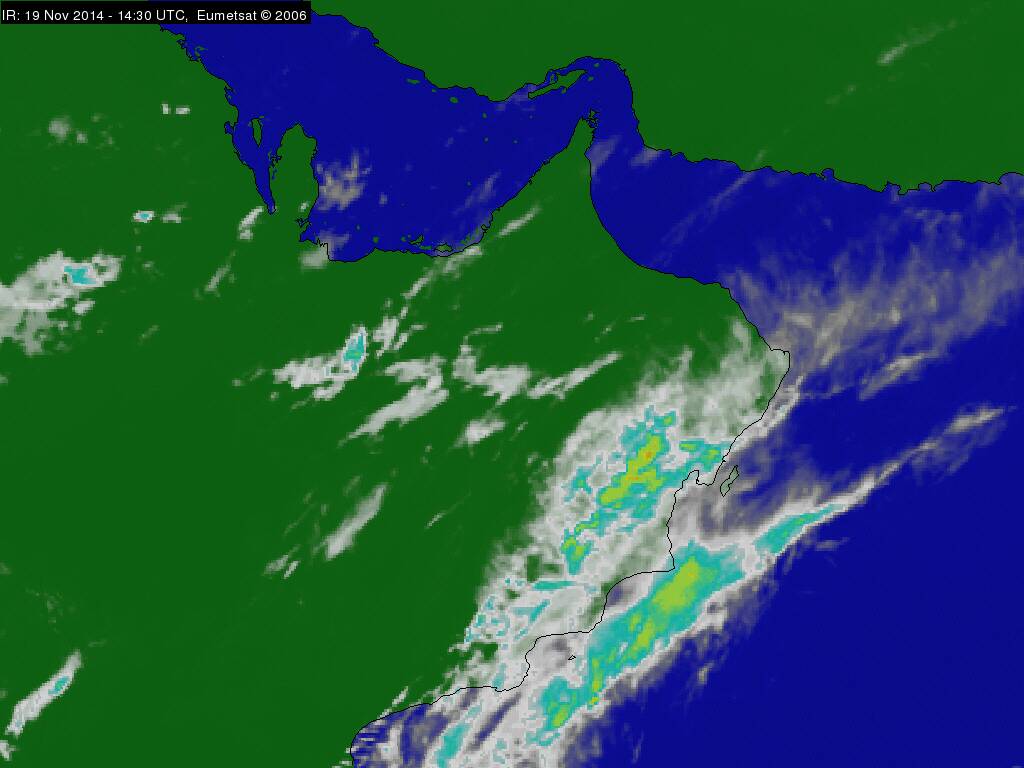 الصورة الجوية توضح إنتشار سحب عالية على سواحل السلطنة الجنوبية