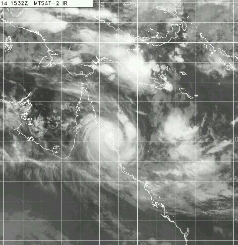 صورة جوية للإعصار إيتا وقد ضرب مناطق شمال شرق أستراليا مسبب أمطار غزيرة جدا