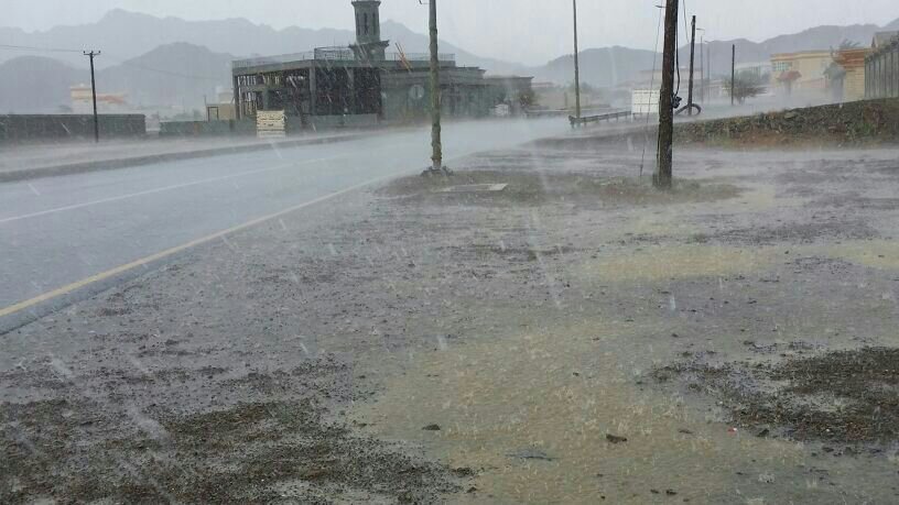 أمطار غزيرة مصحوبة ببرق ورعد طريق حيوان مصيدرة بولاية محضة