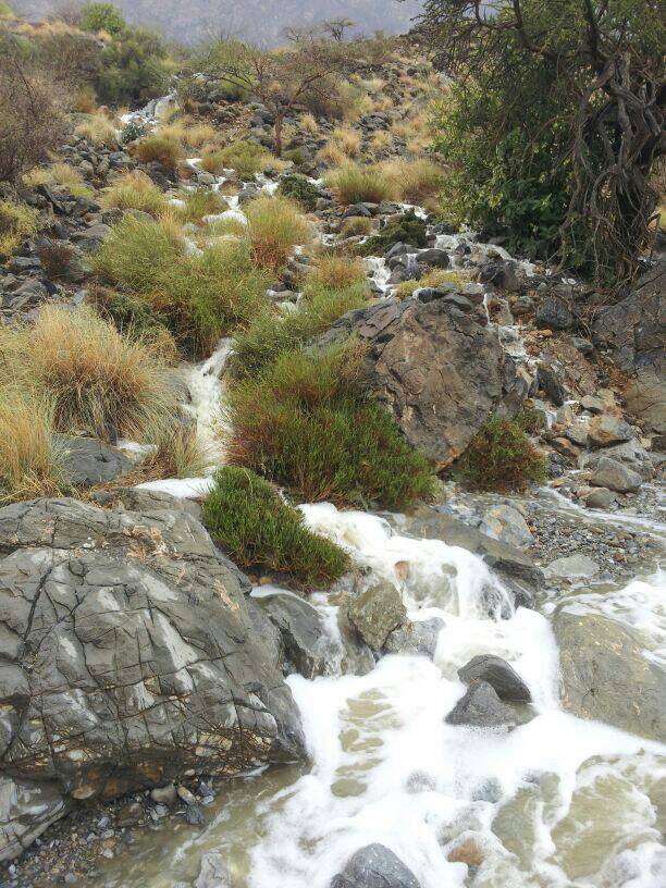 امطار مستمره وشلالات تنهمر ما شاء اللــﮧ وادي بني خروص- العوابــــــــي