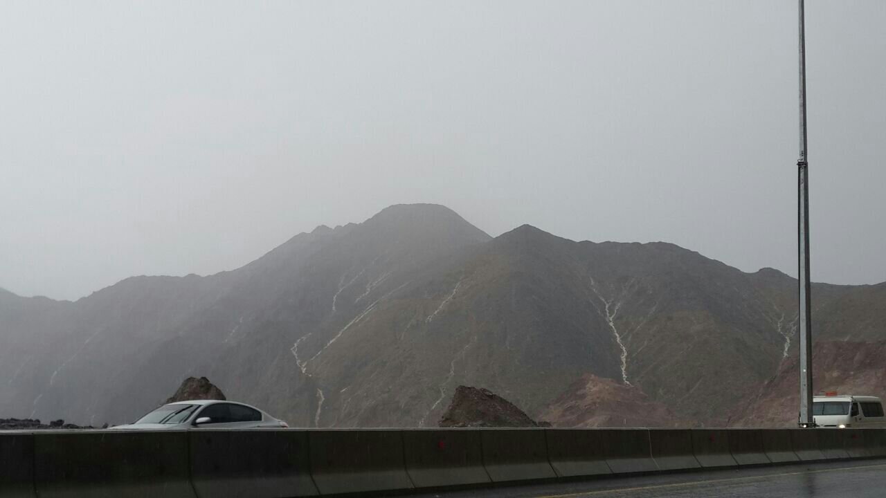 من الأمطار الغزيرة على جبال بوشر العامرات مع إنحدار الشلالات من أعالي الجبال