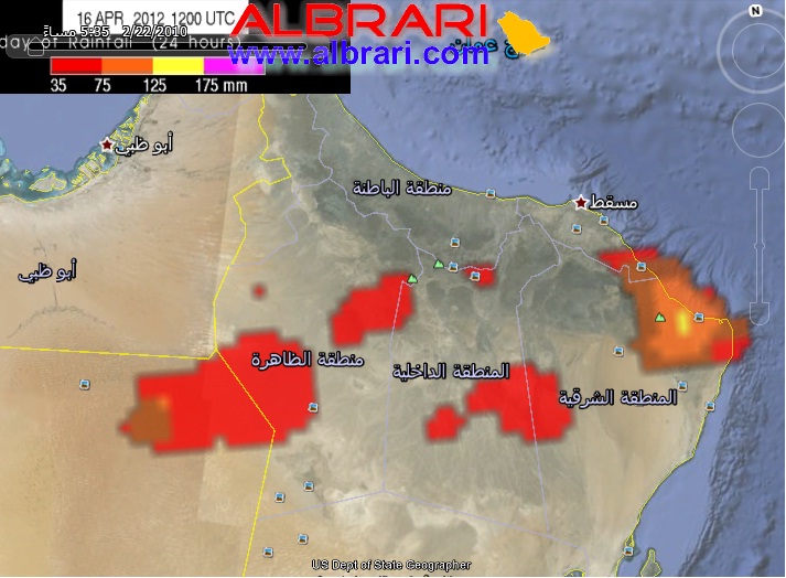 رد: متابعة تأثر السلطنة والإمارات بأخدود منخفض جوي 16 / 4 / 2012مــ