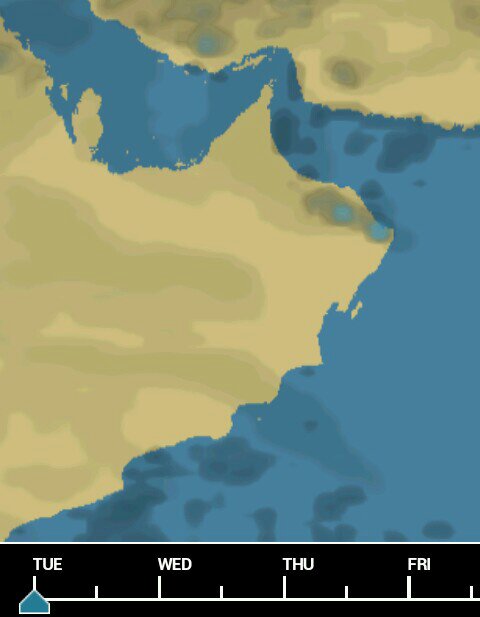 الرؤية واضحة بالنسبة لليوم واليومين القادمين والتاثير الاهم هو نشاط نهاري بتكونات على حجر عمان تؤدي الى هطول امطار رعدية ويوم الخميس سيكون مختلف مع احتمال امتداد التاثير لسواحل بحر عمان وامتداد النشاط الى ساعات الليل والواضح من خلال الخرائط بان الاضطراب الجوي سيمتد لفترة زمنية ليست قصيرة بحول الله تعالى قد تمتد الى بعد منتصف الاسبوع المقبل، والاستفادة اوفر لجبال الحجر ومناطقها المجاورة والبيانات تلمح لنشاط متصاعد مع جريان الاودية باذن الله والله اعلم .
