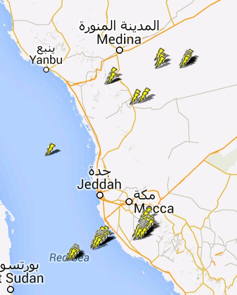 النشاط الرعدي حاليا جنوب#مكة المكرمة #المدينة المنورة والبحر الأحمر