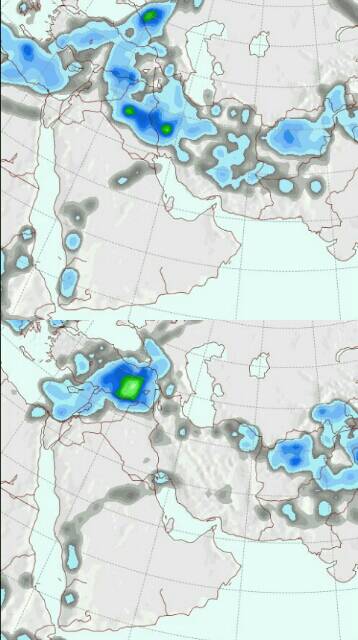 توقعات نموذج gfs خلال اليومين القادمين بأجواء ماطرة على أجزاء من بلاد الشام والعراق وتكونات ممطرة بالمرتفعات اليمنية السعودية