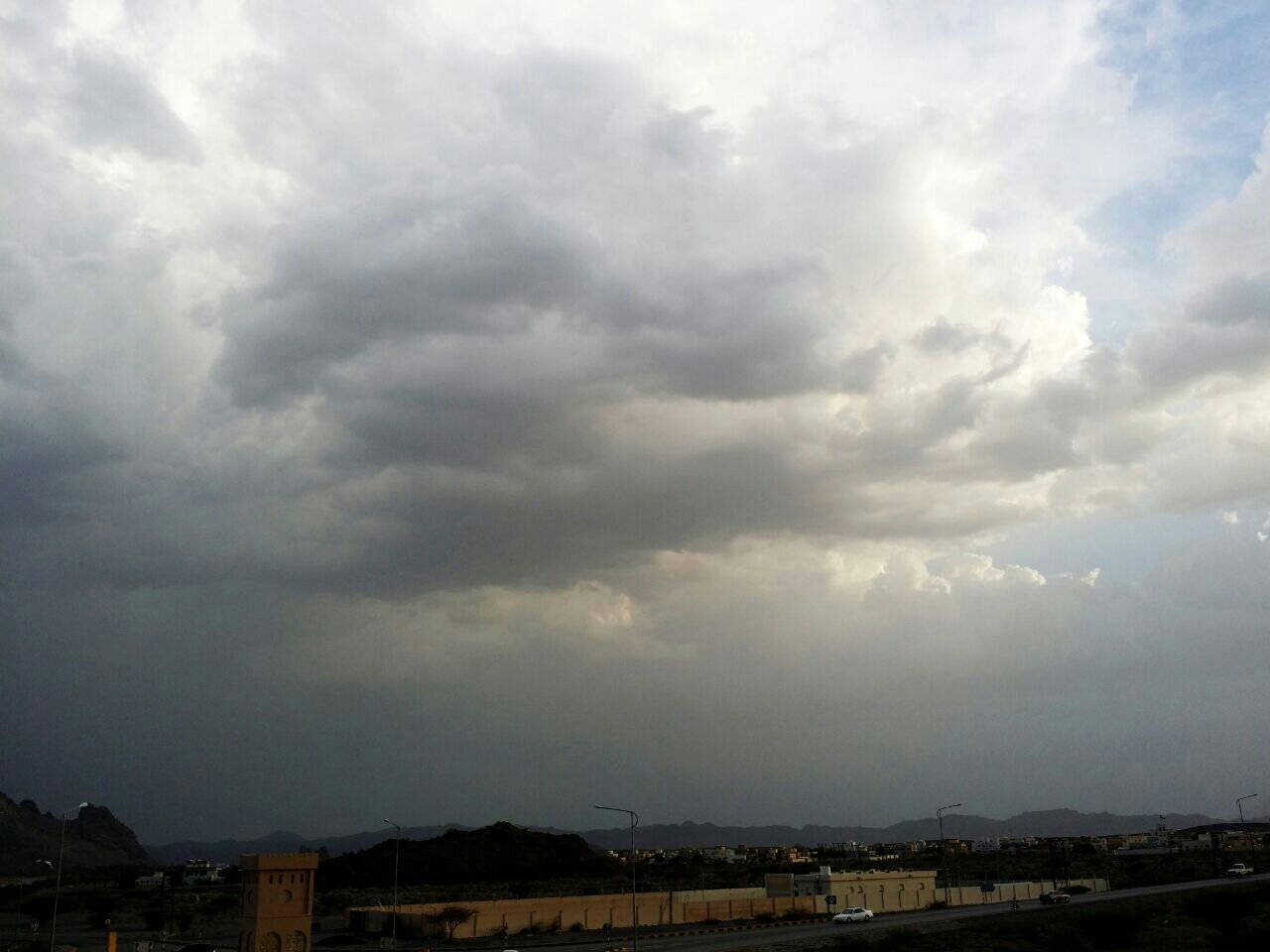 سحب ركامية نشطة تنوف وباتجاه حي السعد ببهلا على وشك نزول الغيث منها