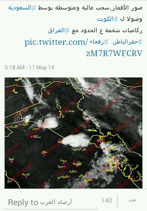 رد: متابعة : أحوال الطقس وحالة عدم الاستقرار في السلطنة ودول الخليج والوطن العربي خلال الفترة من 1 - 10 مايـو 2014م