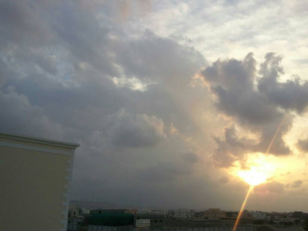 صورة اخرى للأجواء جنوب غرب الخوض ..سحب ركامية منخفضة