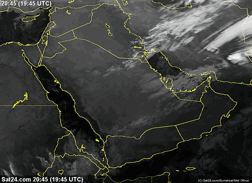 تواجد للسحب المتوسطة والمنخفضة بالخليج العربي وشمال #الإمارات وأجزاء من #قطر قد تعطي بعض الأمطار