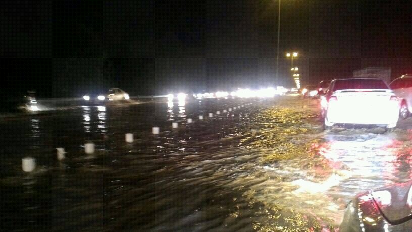 لمسافة كيلومترات شارع الخدمات مغمور بالمياة