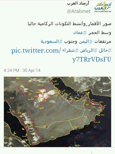 رد: متابعة احوال الطقس على السلطنة ودول الخليج والوطن العربي خلال النصف الثاني من شهر أبريل من العام 2014