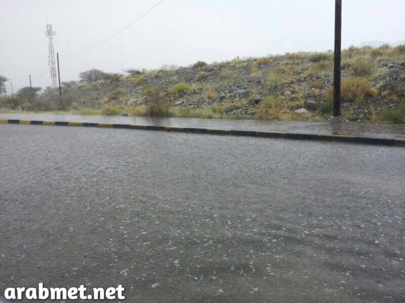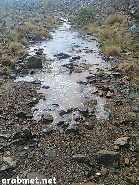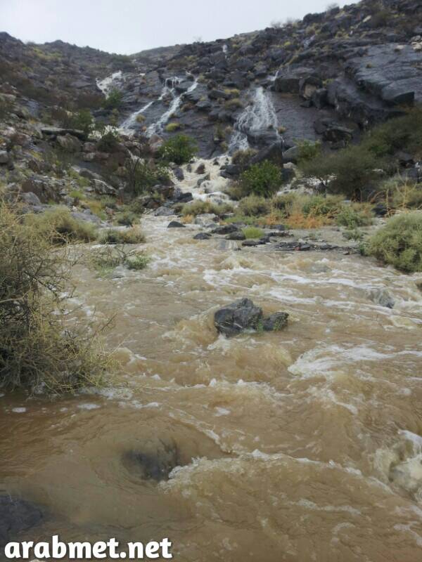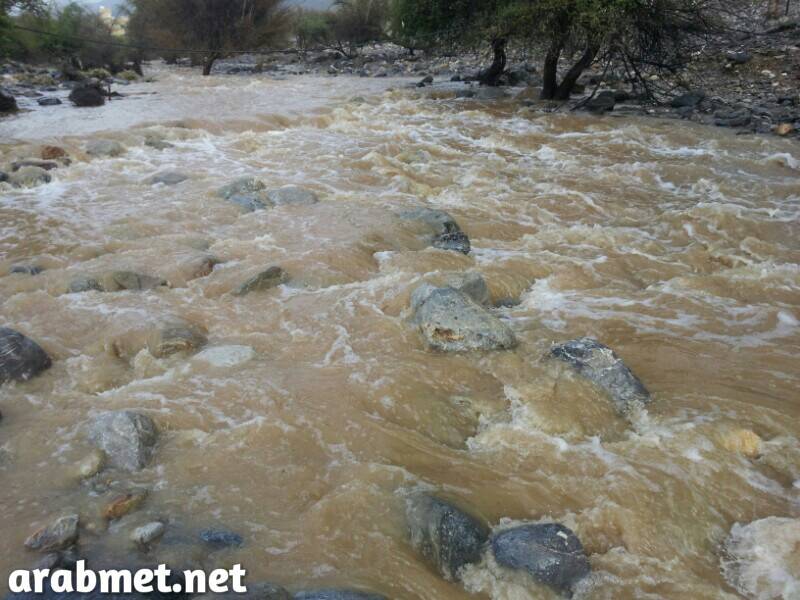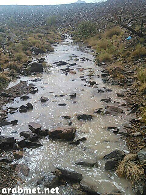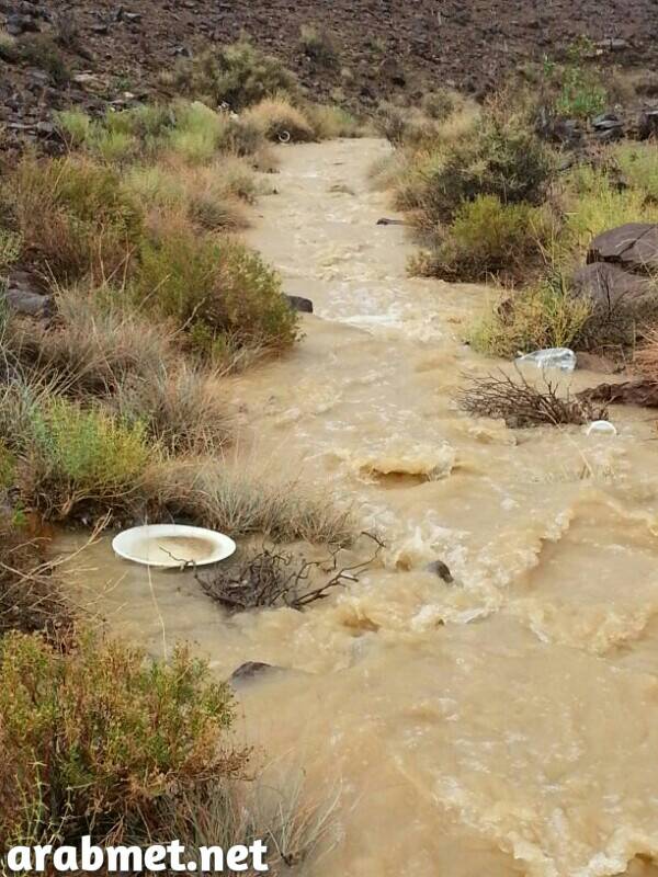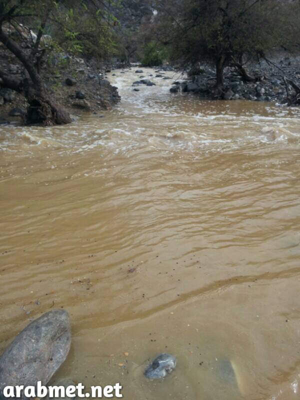 هطلت امطار متوسطه عصر اليوم ع الحيال وما جاورها ادت الى جريان الشعاب