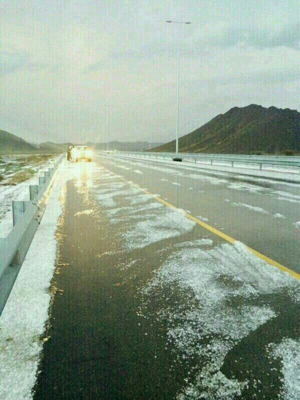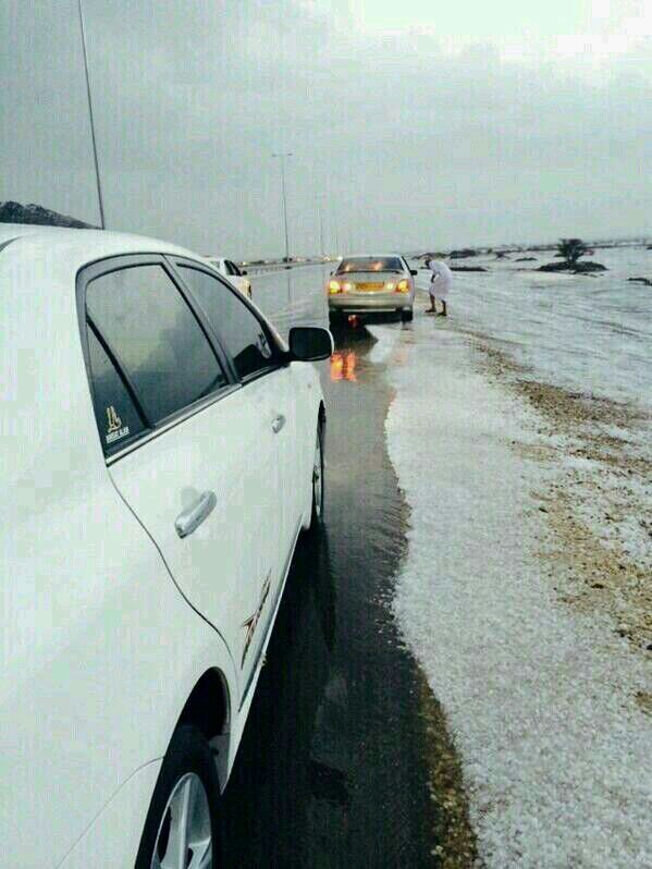 امطار غزيرة مصحوبة بحبات البرد.. مفترق جبرين، بهلاء
