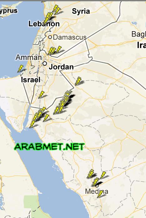 آخر تحديث لرصد البروق وخليةبالقرب من المدينة المنورة واخرى شمال بالقرب من #تبوك وايضا ب #الأردن #سوريا #لبنان #فلسطين