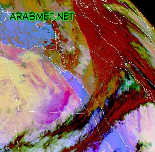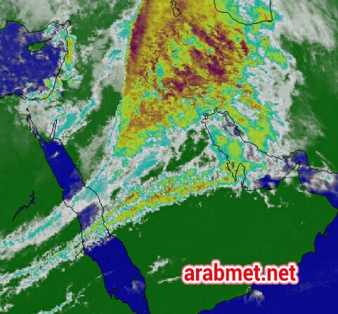 ونظرا لضعف الامداد على جنوب شرق الجزيرة احتمال تدفق السحب العالية الى الإمارات وشمال عمان يعني صحو الى غائم جزئيا واحتمال