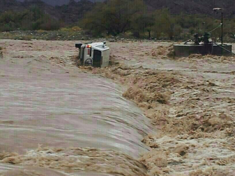 وادي الرحبة يجرف سيارة وتم انقاذ السائق