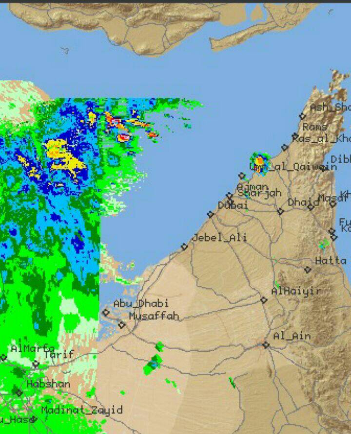 في مسندم أمطار متفرقة ومن المتوقع تزداد الامطار الساعات القادمة