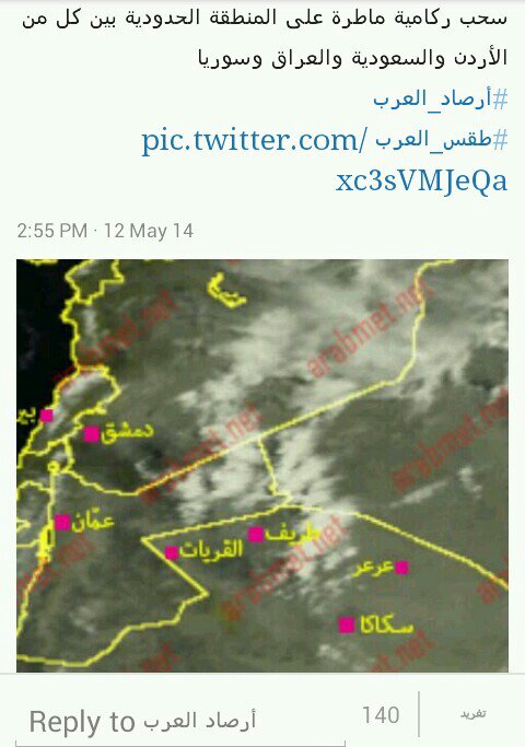 رد: متابعة : أحوال الطقس وحالة عدم الاستقرار في السلطنة ودول الخليج والوطن العربي خلال الفترة من 11 - 20 مايـو 2014م